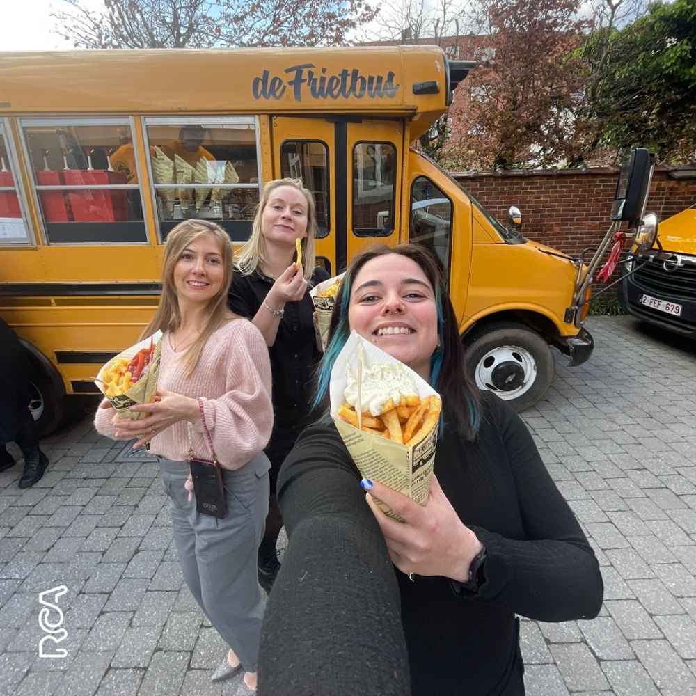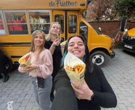 Maak kennis met de Frietbus, een oude schoolbus die is omgetoverd tot knusse foodtruck — en dé plek voor echte Belgische frieten. In deze nostalgische blikvanger worden er ter plekke dagverse frieten gebakken, geserveerd met klassieke en verrassende sauzen. Kom langs voor een lekkere hap en een vleugje retrogevoel!